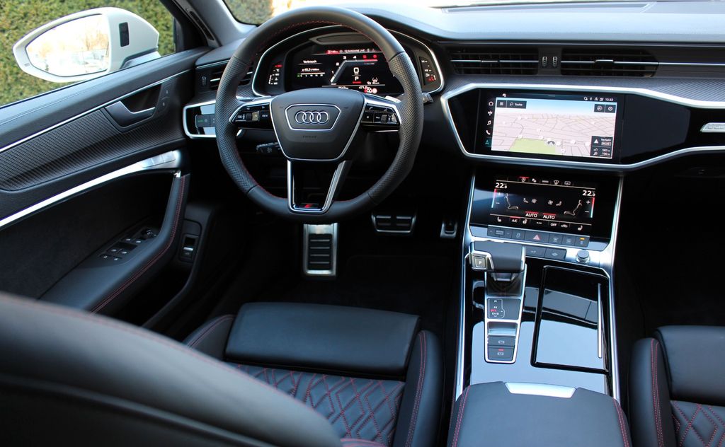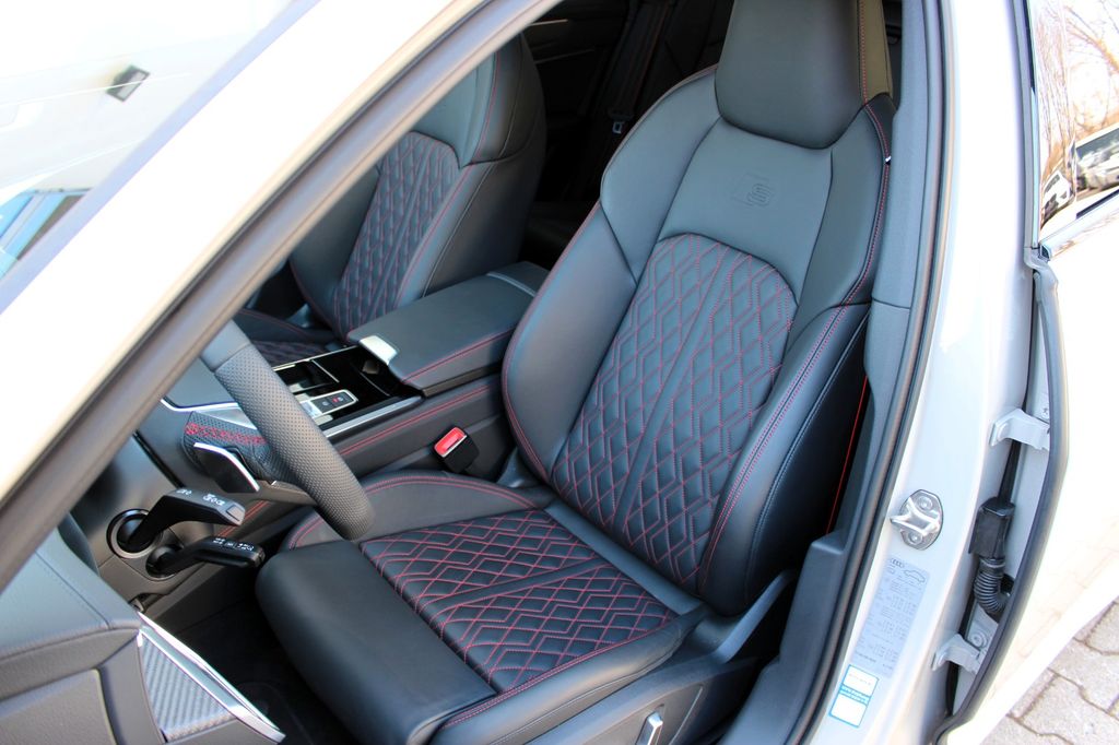 Ablage-Paket, Akustikglas Türscheiben seitlich, Assistenz-Paket Parken mit Remote Parklenkassistent, Business-Paket, Dachhimmel Stoff, schwarz, Dachkantenspoiler RS, Diebstahlsicherung für Räder (Felgenschlösser), Doppel-Sonnenblenden (verschiebbar, ausziehbar), Dynamiklenkung - Allradlenkung, Fahrassistenz-System: Insassen-Schutzsystem (Audi pre sense Fond), Fahrassistenz-System: Spurwechselassistent (Side Assist) inkl. Audi pre sense rear, Fahrwerk mit Dämpferregelung (Magnetic Ride), Harnstofftank (SCR): 24 Ltr., HD Matrix-LED-Scheinwerfer, Head-up-Display, Individuallackierung Audi exclusive, Innenausstattung: Dekoreinlagen Carbon, Innenausstattung: Farbnaht Rot, Innenausstattung: Interieurelemente in Kunstleder oben und unten, Ionisator zur Luftreinigung (Air-Quality-System), Isofix-Aufnahmen für Kindersitz an Beifahrersitz, Komfortschlüssel mit sensorgesteuerter Heckklappenentriegelung inkl. (öffnen + schliessen), Kontur / Ambientebeleuchtungs-Paket (plus), Kraftstofftank: 73 Ltr., Lenksäule (Lenkrad) elektr. verstellbar mit Memory, LM-Felgen 8,5x21 (5-V-Speichen, Struktur-Design, Anthrazit-Schwarz, glanzgedreht), Multi-Media-Interface MMI Navigation Plus mit MMI Touch, Optik-Paket schwarz plus, Panoramadach vorn elektrisch, hinten fest, Reifendruck-Kontrollsystem, Servoschliessung für Türen, Sitzbezug / Polsterung: Leder Valcona mit Logo-Prägung in Vordersitzlehnen, Sitze vorn elektr. verstellbar (links mit Memory), Sound-System Bang & Olufsen, Sportdifferential, Sportsitze plus vorn, Standheizung, USB-Ladeanschlüsse (2-fach, Typ C) für Fondpassagiere, Verglasung hinten abgedunkelt (Privacyverglasung) und Türscheiben vorn Akustikglas