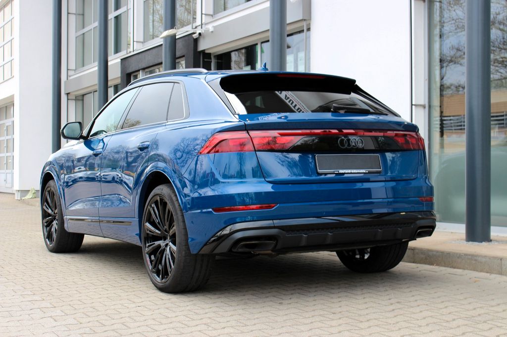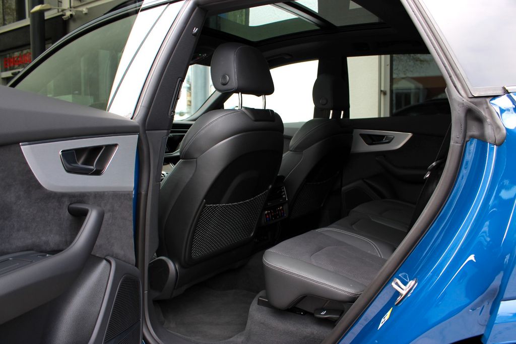Allradlenkung, Assistenz-Paket Parken, Audi Ringe und Schriftzüge schwarz glänzend, Ausstattungs-Paket: S line Sport / Plus, Außenspiegel elektr. verstell-, heiz- und anklappbar, mit Abblendautomatik und Memory, Dachreling (Aluminium), Exterieur-Paket S line, Fahrassistenz-System: Spurwechselassistent (Side Assist) inkl. Audi pre sense rear, Isofix-Aufnahmen für Kindersitz an Beifahrersitz, Klimaautomatik 4-Zonen, Kombiinstrument digital (virtual cockpit plus), Kontur / Ambientebeleuchtungs-Paket (plus), Lenkrad (Sport/Leder - 3-Speichen, unten abgeflacht) mit Multifunktion und Schaltfunktion, LM-Felgen 10x23 (10-Speichen-Trapezoid-Design, schwarz, Audi Sport), Matrix Heckleuchten OLED, Matrix-LED-Scheinwerfer mit Laserlicht, Panoramadach vorn elektrisch, hinten fest, Raucher-Paket, Rücksitzlehne geteilt/klappbar, verschiebbar (40:20:40), Servoschliessung für Türen, Sonderlackierung Ascari-Blau Metallic, Sound-System Bang & Olufsen, Stoßfänger Sport-Design (S-line, Voll-Lackierung), Verglasung hinten abgedunkelt (Privacyverglasung)