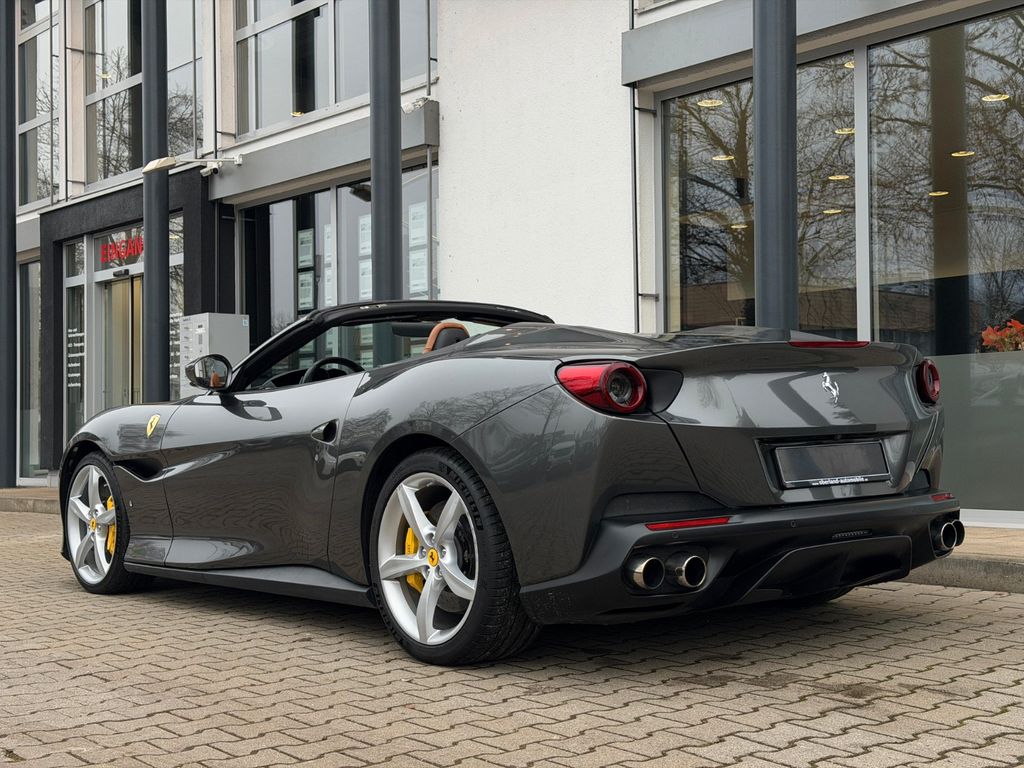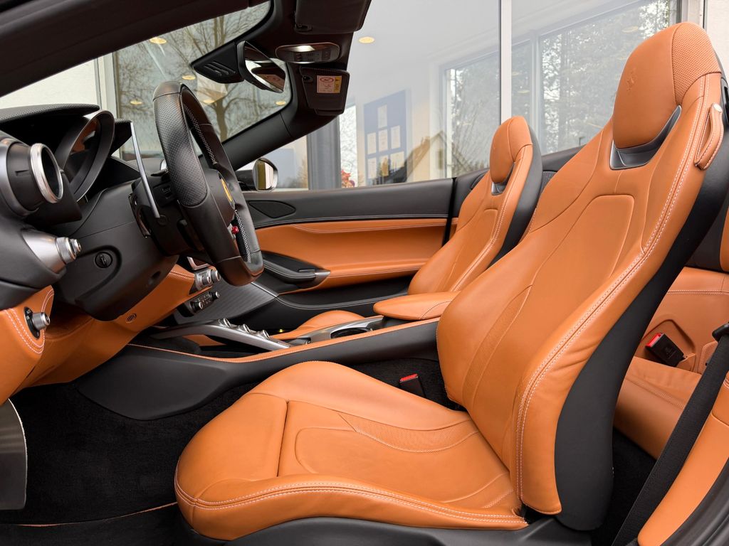 Grigio Silverstone 740, Innenraum Cuoio 4609, Teppiche Nero 152, Adaptive Headlights mit SBL-Funktion, gelbe Bremssättel, Steinschlagschutzfolie, farbige Fußmatten mit Logo, HELE-System (Start-Stopp), Homelink, „Scuderia Ferrari“-Schilder, Magneride Dual Mode Fahrwerk, Rückfahrkamera, Aluminium-Fußstützen Fahrer/Beifahrer, vollelektrische Sitze, umklappbare Rücksitzlehne, Kontrastnähte in Bianco 2000