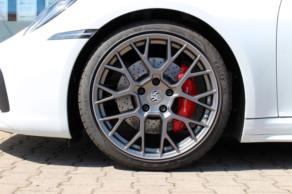 Airbag Fahrer-/Beifahrerseite, Antriebsart: Heckantrieb, Außenspiegel asphärisch, links, Außenspiegel elektr. verstell- und heizbar, beide, Blinkleuchten LED, Bremssättel Rot lackiert, Cabrio, Connect Plus (Bluetooth, Apple CarPlay, WLAN, Vehicle-Tracking-System), Dachhimmel Stoff, Diebstahl-Warnanlage mit Innenraumüberwachung, Drehzahlmesser, Einschaltautomatik für Fahrlicht, Einstiegsblenden mit Modellbezeichnung (Aluminium), Fahrassistenz-System: Berganfahr-Assistent (Hill-Holder), Fahrassistenz-System: Kollisionswarnsystem mit Bremseingriff und Fußgängererkennung, Fußmatten, Getriebe 8-Gang - Doppelkupplungsgetriebe (PDK), Getränkehalter, Heckleuchten LED, Heckscheibe heizbar, Heckspoiler, Innenausstattung: Leder, Serienlederfarbe, Innenraumfilter: Aktivkohlefilter (Geruchsfilter), Isofix-Aufnahmen für Kindersitz an Beifahrersitz, Karosserie: 2-türig, Keyless Drive, Kleiderhaken Sitzrückenlehne Leder, Klimaautomatik 2-Zonen, Kopf-Airbag-System Porsche Side Impact Protection System (POSIP), Kopf-Schulter-Airbag vorn (Thoraxbag), Motor 3,0 Ltr. - 331 kW KAT, Otto-Partikelfilter (OPF), Parkbremse elektrisch, Porsche Active Suspension Management (PASM), Porsche Communications Management (PCM) inkl. Online - Navigationsmodul, Porsche Torque Vectoring Plus (PTV Plus), Porsche Traction Management (PTM), Reifendruck-Kontrollsystem, Schadstoffarm nach Abgasnorm Euro 6d-TEMP, Schriftzug Modellreihe, Sport Taste, Start/Stop-Anlage, Turbo, Uni-Lackierung, Vehicle-Tracking-System (PVTS), Verdeckbetätigung elektrisch, Verglasung getönt, Windschott elektrisch