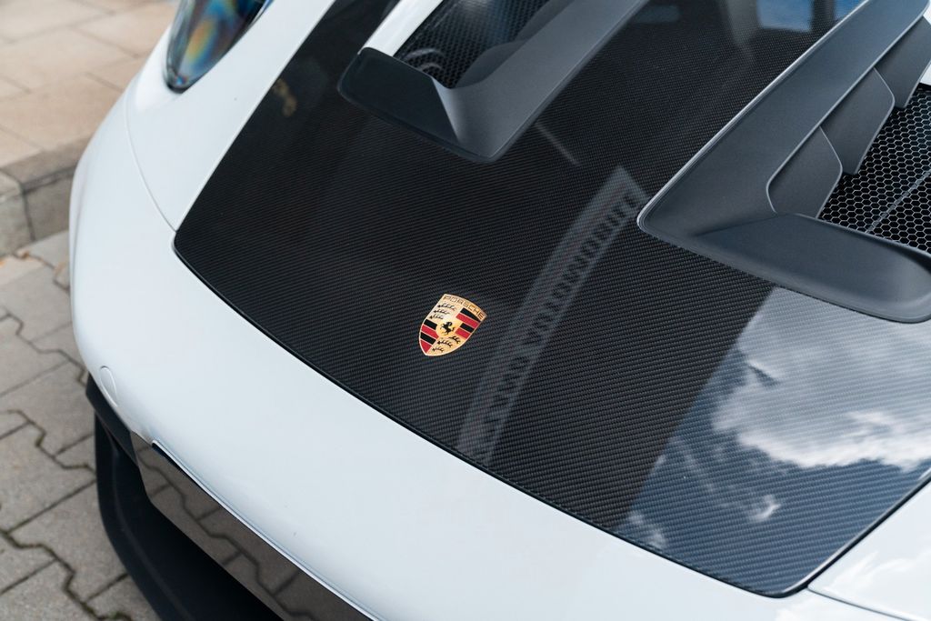 Airbag Fahrer-/Beifahrerseite, Antriebsart: Heckantrieb, Außenspiegel elektr. verstell- und heizbar, beide, Blinkleuchten LED, Connect Plus (Bluetooth, Apple CarPlay, WLAN, Vehicle-Tracking-System), Dach Carbon, Diebstahl-Warnanlage mit Innenraumüberwachung, Drehzahlmesser, Einschaltautomatik für Fahrlicht, Einstiegsblenden mit Modellbezeichnung (Aluminium), Fahrassistenz-System: Berganfahr-Assistent (Hill-Holder), Fensterzierleisten schwarz, Frontscheibe mit Bandfilter oben, Fußmatten, Getriebe 7-Gang - Sport Doppelkupplungsgetriebe (PDK), Getränkehalter, GT3 Cup, Heckflügelspoiler, Flügelstützen schwarz, Heckscheibe heizbar, Innenausstattung: Serienausstattung / Race-Tex, Ziernähte in Kontrastfarbe), Innenraumfilter: Aktivkohlefilter (Geruchsfilter), Interieur-Paket Ziernähte farblich abweichend, Interieur-Paket: Carbon, Karosserie: 2-türig, Keyless Drive, Kleiderhaken Sitzrückenlehne Leder, Klimaautomatik 2-Zonen, Kopf-Airbag-System (Curtain-Airbag), Kopf-Airbag-System Porsche Side Impact Protection System (POSIP), Kopf-Schulter-Airbag vorn (Thoraxbag), Kotflügel vorn Carbon in Wagenfarbe, Leichtbau und Geräuschschutz Verglasung, Leichtbau-Batterie (Lithium-Ionen), Lenkrad (GT Sport / Race-Tex) mit Multifunktion und Schaltfunktion, Mobile Online Dienste Android Auto, Modellbezeichnung lackiert, Motor 4,0 Ltr. - 386 kW KAT, Otto-Partikelfilter (OPF), Parkbremse elektrisch, Porsche Communications Management (PCM) inkl. Online - Navigationsmodul, Porsche Torque Vectoring Plus (PTV Plus), Radioempfang digital (DAB+), Radnaben - Abdeckungen Porschewappen farbig, Radnaben mit Zentralverschluss, Reifendruck-Kontrollsystem, Schadstoffarm nach Abgasnorm Euro 6d, Schriftzug Modell-Schriftzug seitlich, farbig, Schwellerabdeckung / -verkleidung, Sonnenblenden mit Spiegel (beleuchtet), Sport-Auspuffanlage, Endrohre schwarz, Sport-Chrono-Paket, Sport-Fahrwerk (PASM) elektronisch gesteuert, Start/Stop-Anlage, Tankdeckel Exclusive Design, Uni-Lackierung, Vehicle-Tracking-System (PVTS), Vierradlenkung, Vollschalensitze vorn